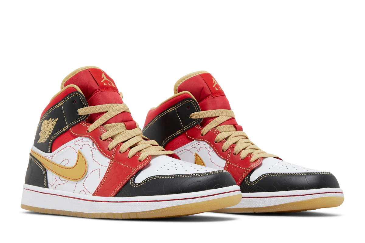 Jordan Jordan 1 Mid XQ — White/Gold Dust-Sport Red-Black